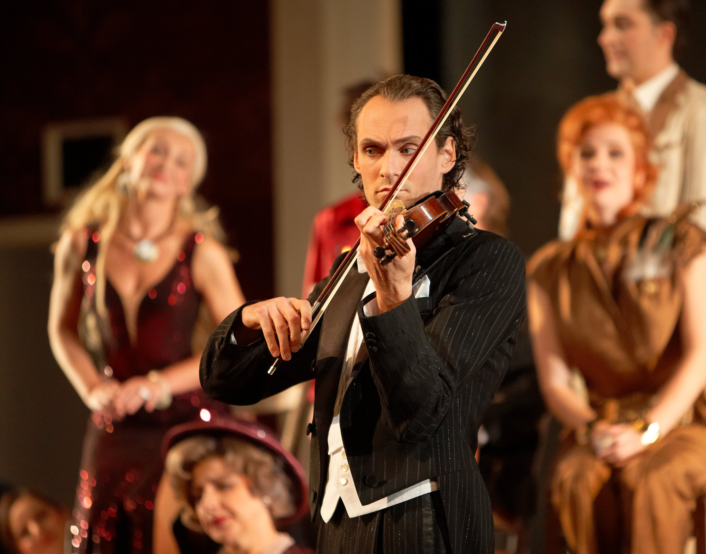 Dirigent Karl Andreas Mehling hatte federnden Rhythmus verordnet – und traf damit ins Schwarze. Die phantasievolle Choreographie von Dimas Casinha duldete keine Cancan-Biederkeit. Das gesamte Ensemble, voran Sophia Brommer (Eurydike), Christian Tschelebiew (Jupiter) und Roman Payer (Pluto), demonstrierte eindrucksvoll, wie effektvoll Pointen wirken können, wenn man sie ohne Übertreibungen setzt. Schon zur Pause rieb man sich verwundert die Augen. Dass sich eine Offenbach Operette auf deutsch (Text: Stefan Bausch, Jochen Biganzoli) so delikat und ganz ohne Holzhammer präsentiert, stimmt angesichts der zumeist verunglückten Versuche der Vergangenheit hoffnungsfroh.