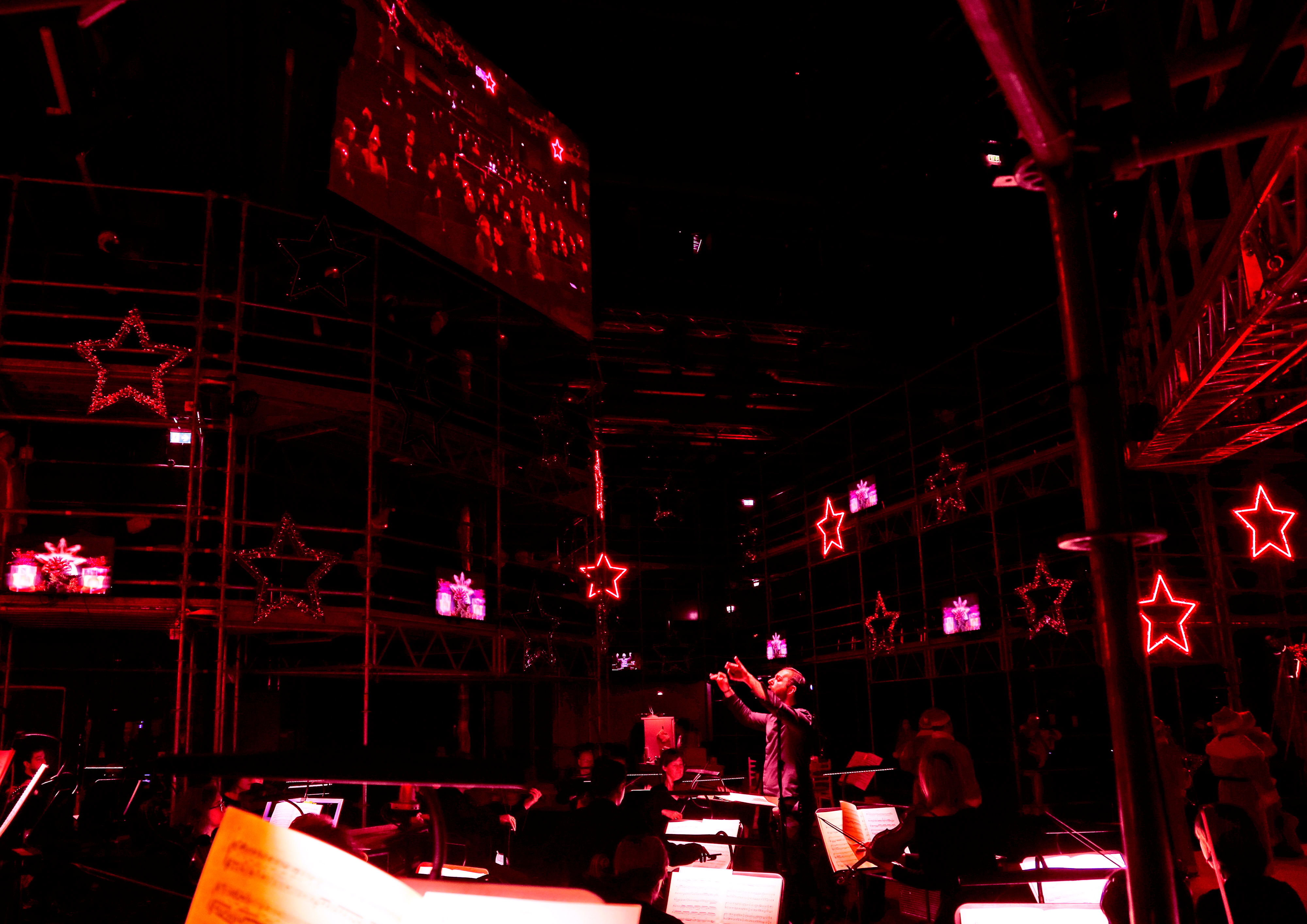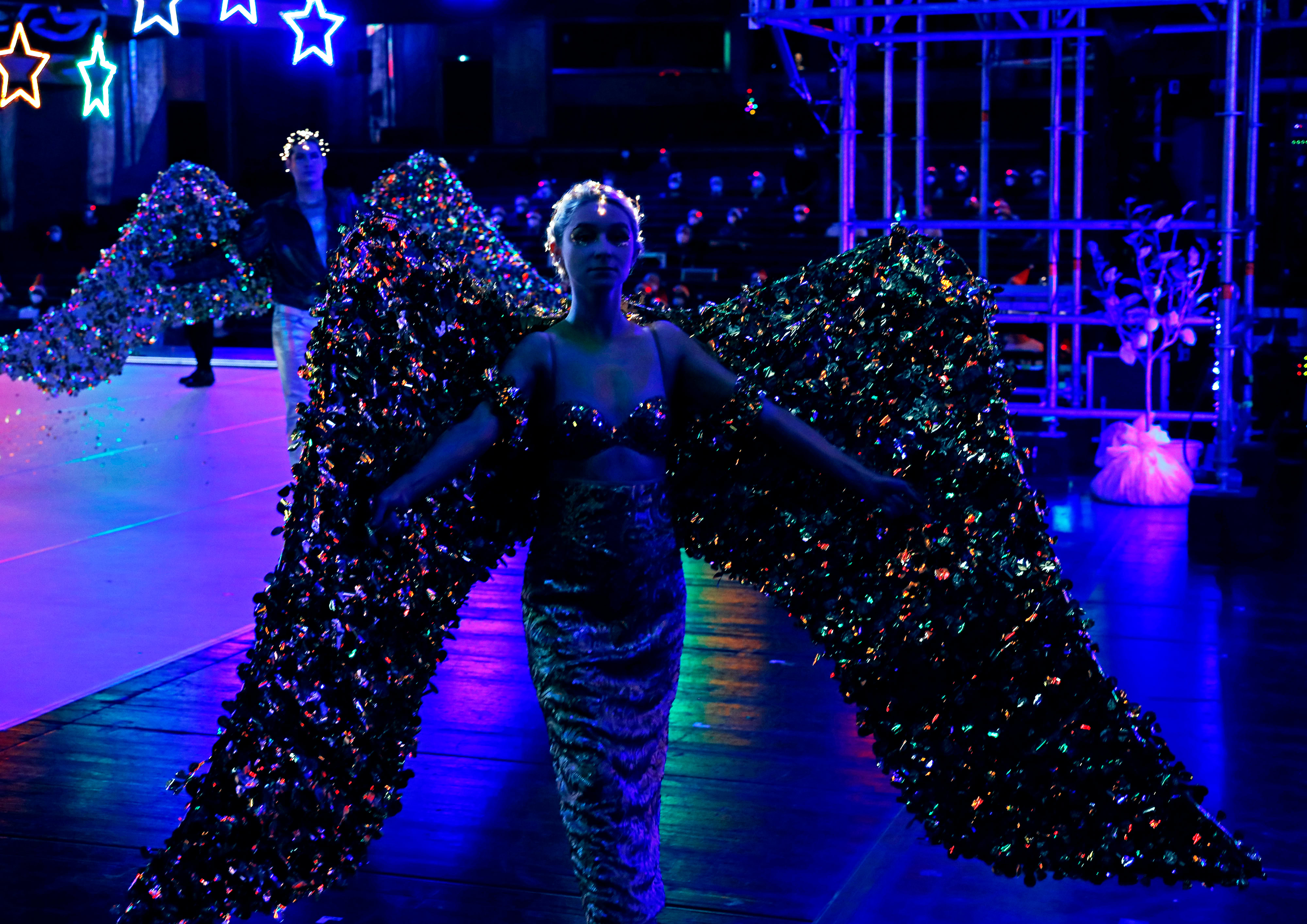 In seiner dezidierten Überladung mit Eindrücken und Aufforderungen an das Publikum – hier blinken die Sterne, da das Glitzerhemd des Evangelisten also known as Showmaster; mal soll man spenden, mal mitsingen; zugleich müssen auch noch drei Wohnräume und das Fitnessstudio im Blick behalten werden – trifft Biganzolis Inszenierung durchaus ein vorweihnachtliches Lebensgefühl und stellt an jeden einzeln die Frage: Mitmachen oder nicht?